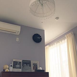 紫の壁にikeaのお花のウォールライトがある部屋 可愛い部屋紹介ブログ